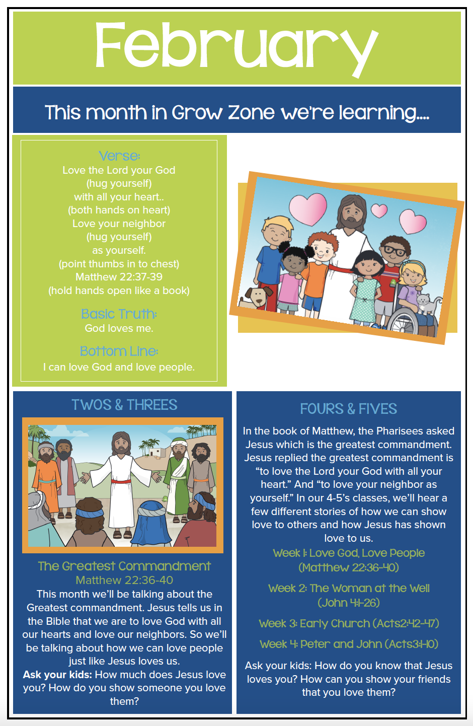 Whether we’re rocking tiny babies, coloring with two-year-olds, or singing worship songs with four-year-olds, everything we do in Grow Zone reflects these four basic truths: